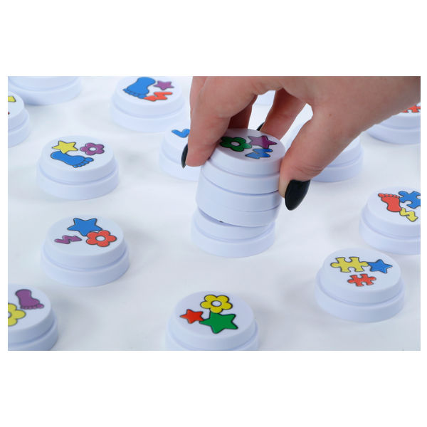 Pak de juiste schijven en klik ze sneller dan je medespelers op elkaar in dit vliegensvlugge reactiespel. De dobbelstenen geven aan welke schijven moeten worden gepakt, maar pak je per ongeluk de verkeerde, dan wordt je stapel alleen maar kleiner. Heb jij aan het einde van het spel de hoogste stapel?