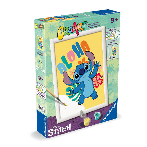 Maak een prachtig kunstwerk met CreArt Aloha Stitch! Schilderen op nummer van Ravensburger maakt het voor iedereen eenvoudig om de kunstenaar in zichzelf te ontdekken. Dankzij de duidelijke schildervakjes en de gekleurde buitenlijnen is het makkelijk om de afbeelding te volgen en een indrukwekkend kunstwerk te maken. Ideaal voor jonge kunstenaars die houden van Stitch en creativiteit!