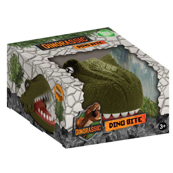 Bijtende dino spel, pas op voor de zere tand! Afmetingen: 16 x 9 centimeter. Geschikt vanaf 3 jaar.