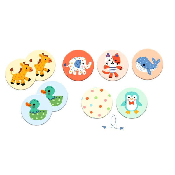 Memo Doudous is een combinatie- en geheugenspel rond het favoriete een dagelijkse thema van het kind: zijn/haar knuffel.
