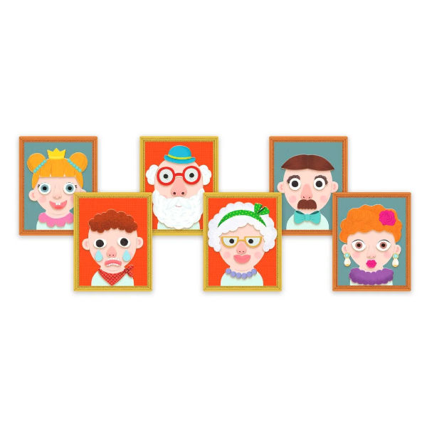 Het kind speelt met houten magneten op een dunne metalen doos. Hij/zij maakt de 12 portretten die op de kaarten staan afgebeeld door de juiste kant van de doos te kiezen.