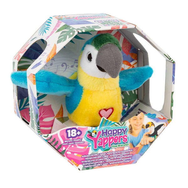 Beleef interactief spel zoals nooit tevoren met Happy Yappers! Deze schattige pluchen vogeltjes herhalen gesproken woorden en geluiden, zingen het vrolijke Happy Yappers liedje (Rock ‘n’ Robin) en fladderen met hun vleugels. Gemaakt van hoogwaardig zacht polyester en te dragen als klaparmband. De Happy Yappers zijn de ideale metgezel voor kinderen. USB-C oplaadbaar en goedgekeurd vanaf 18 maanden en natuurlijk veel ouder!