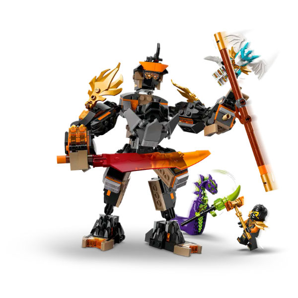 Jongens en meisjes vanaf 7 jaar zullen het geweldig vinden om dit LEGO® NINJAGO® Cole’s missiemecha en draak Zane (71854) ninjaspeelgoed te bouwen en scènes uit seizoen 4 van de tv-serie NINJAGO® De Drakenstrijd na te spelen. Deze speelset bevat een mecha met verstelbaar hoofd, armen, schouderpantser, vingers, benen en enkels, plus een cockpit met plek voor een minifiguur. De mecha is inclusief 3 wapens: een zwaard, een staf en een blaster met veermechanisme en 2 pijltjes, die kinderen kunnen verwisselen met de wapens uit de set Ninjadraak Riyu’s strijd (71855, apart verkrijgbaar). Dit NINJAGO speelgoed wordt ook geleverd met 3 minifiguren: Cole met een hamer, Dragon Form Zane met een zwaard en een zuurmonster met een staf voor rollenspellen boordevol actie. Het LEGO NINJAGO assortiment met bouwsets voor kinderen omvat mecha, draken en tempels waarmee fans ninja-actie kunnen naspelen.