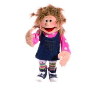 Kleurrijk, nog kleurrijker, Plops! Mond en hoofd speelbaar. Afmeting 20 cm.