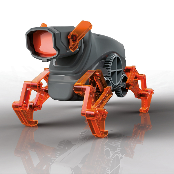 Met dit leuke bouwpakket kan je een op zijn zachtst gezegd buitengewone robot bouwen met 4 poten en een elektromotor met dubbele as waarmee de poten tegelijkertijd kunnen worden bewogen zodat de gang van een dier wordt nagebootst.