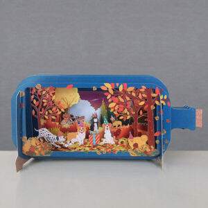 3D pop-up kaart van ca. 25 x 12,6 cm. Afmetingen geopend: 22 x 10 x 8 cm. Afmeting envelop: 24 x 12  cm.
