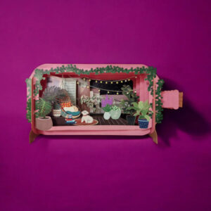 De kaart bestaat uit 6 lagen, uitgevouwen is het een kijkdoos in de vorm van een fles. Op de achterkant is ruimte voor eigen tekst.